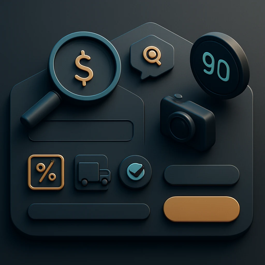 - Marketplace: nombre del vendedor, valoración reciente y política de posventa.