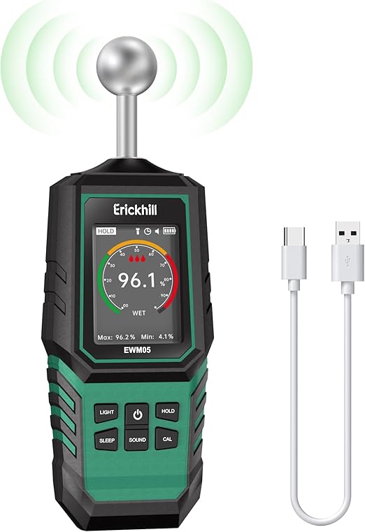 Medidor de Humedad ERICKHILL para Madera y Construcción 🪵