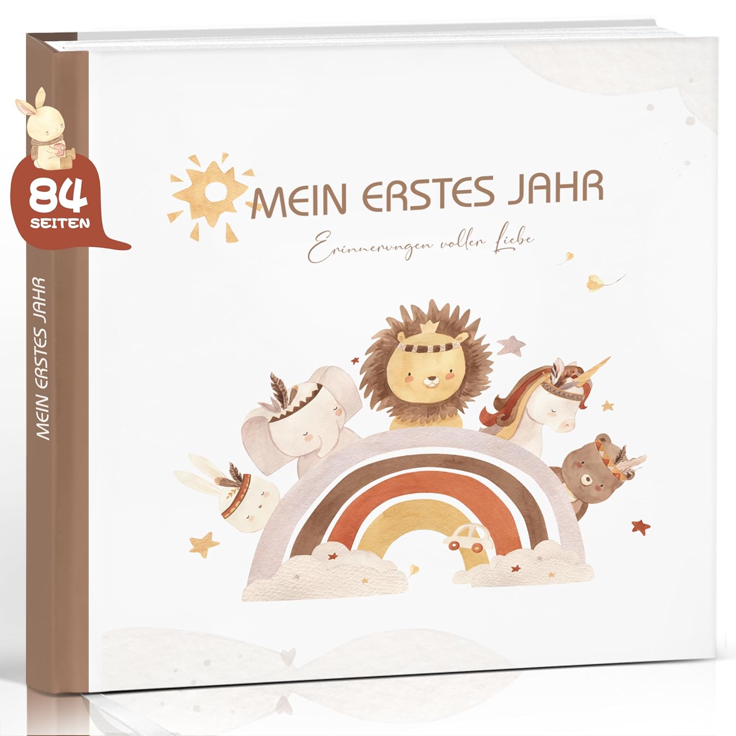 Babybuch „Mein erstes Jahr“ – Babyalbum Erinnerungsbuch für das 1. Lebensjahr im Boho-Stil (21,5 x 21,5 cm)