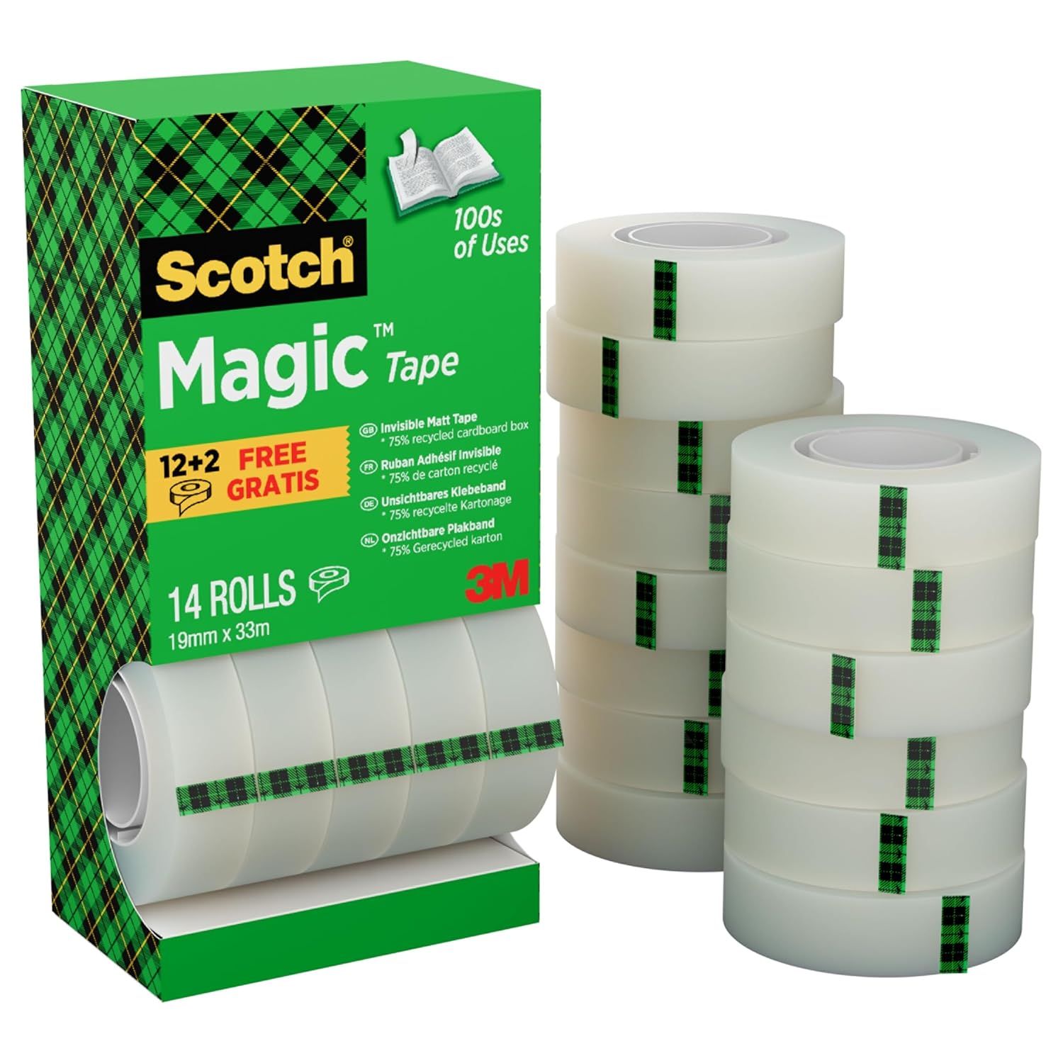 Scotch Magic Tape – 4 Rollen, 19 mm × 33 m, unsichtbares Tintenband für Papier, ...