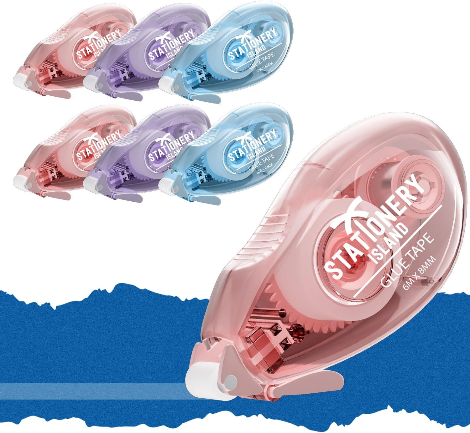 STATIONERY ISLAND 6er Kleberoller für Fotos – doppelseitig selbstklebend (6 m x 8 mm) mit Staubschutz