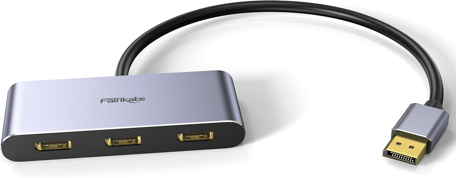 fairikabe DisplayPort 1.4 Splitter mit 3 Anschlüssen (MST-Hub für Triple-Monitor, nur Windows)