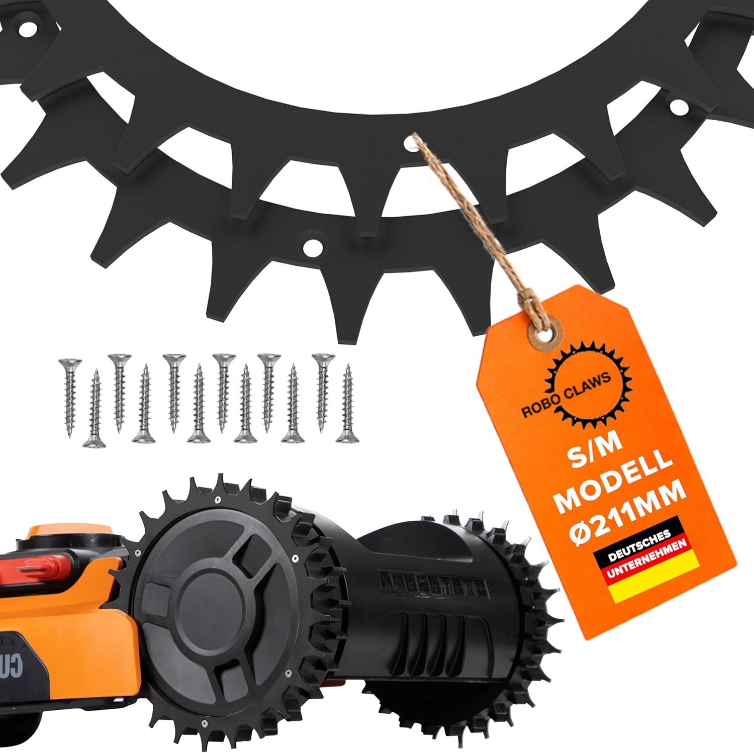 ROBO CLAWS Edelstahl Spikes schwarz für Worx Landroid S/M & Plus (2 mm) – 2× Tra...