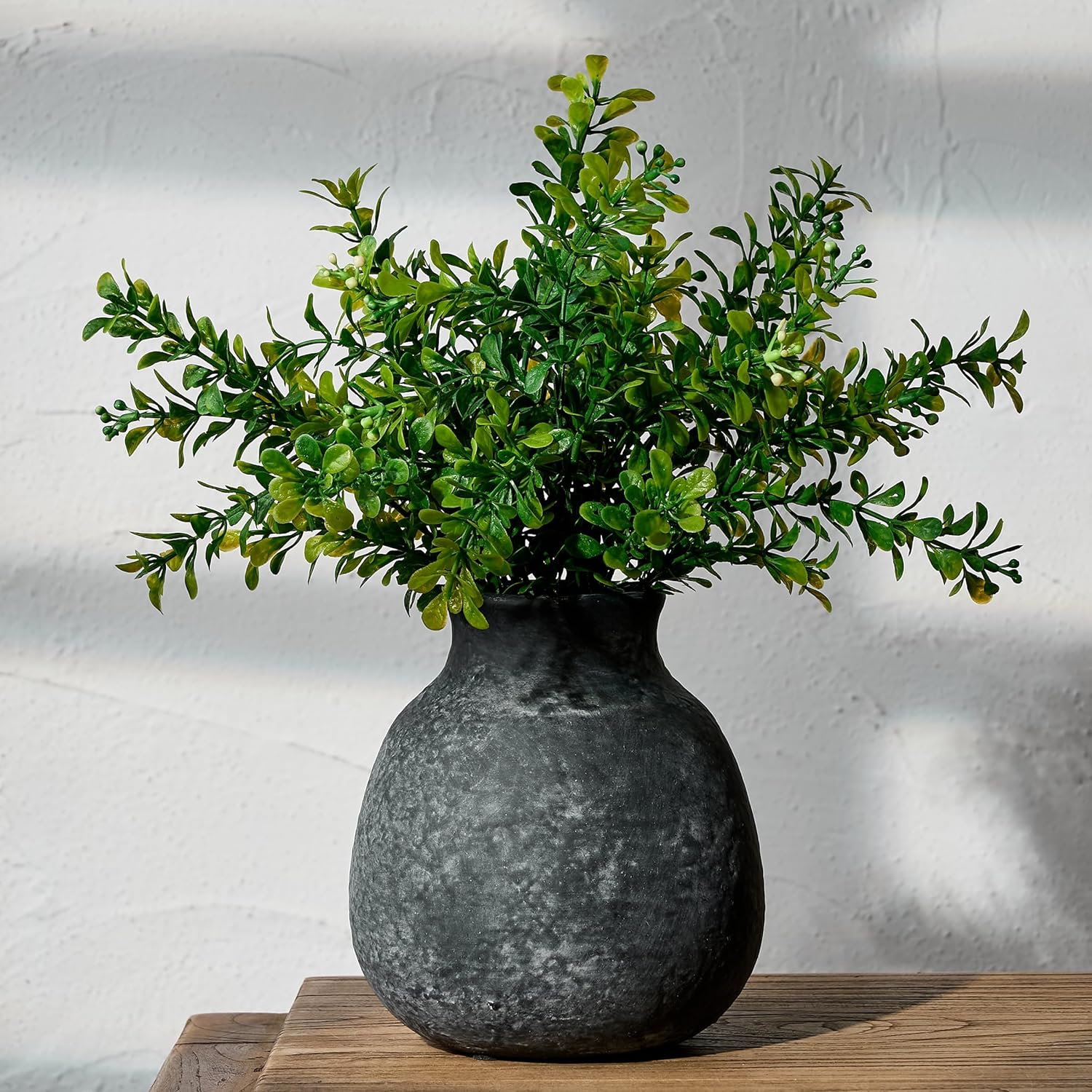 PORCER rustikale Keramik-Blumenvase im Boho-/Bauernhaus-Stil, ca. 15 cm, schwarz