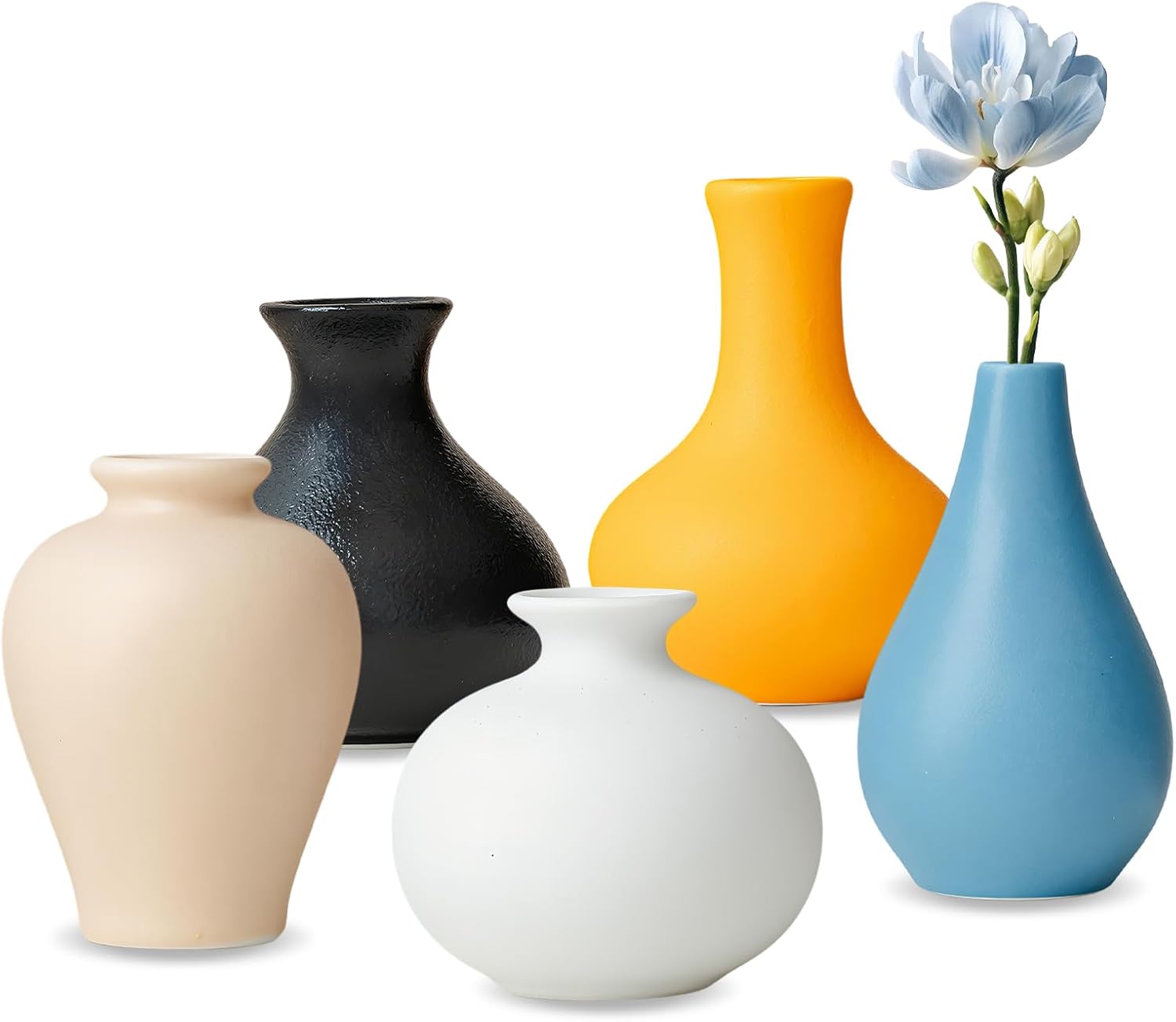 Keramik Vasen 5er-Set – kleine Blumenvasen für moderne Deko, Pampas & getrocknete Blumen