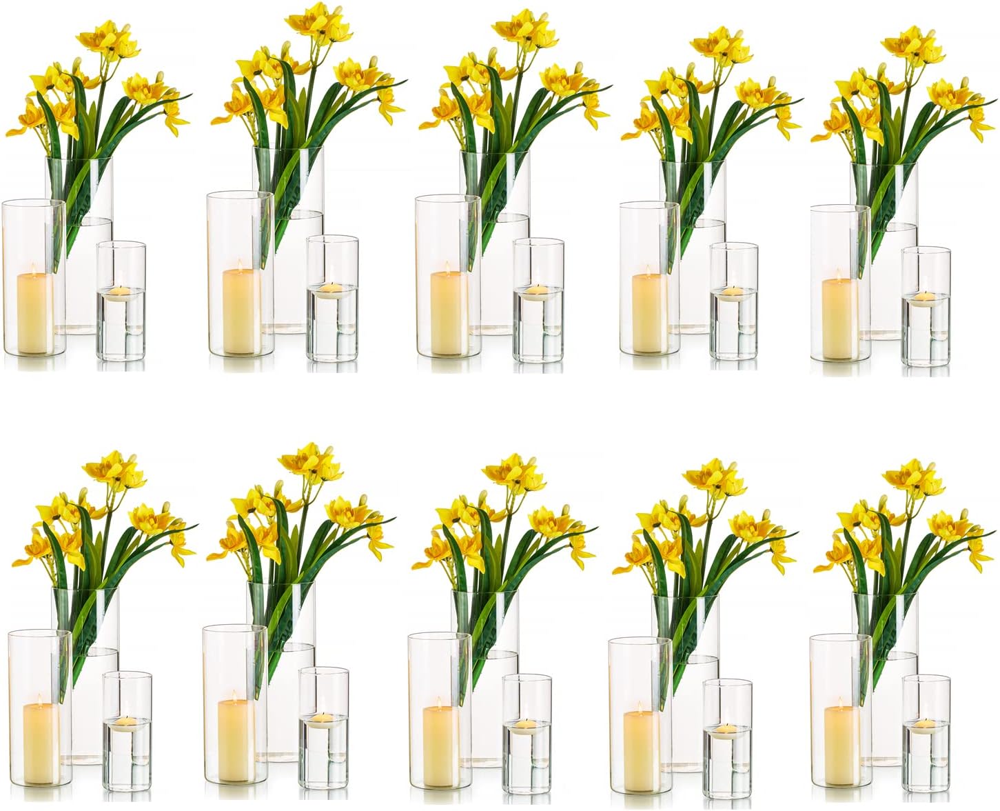 Hewory Glasvase Zylinder-Set (30-teilig) – Glasvasen in 10/15/20 cm für Tischdek...