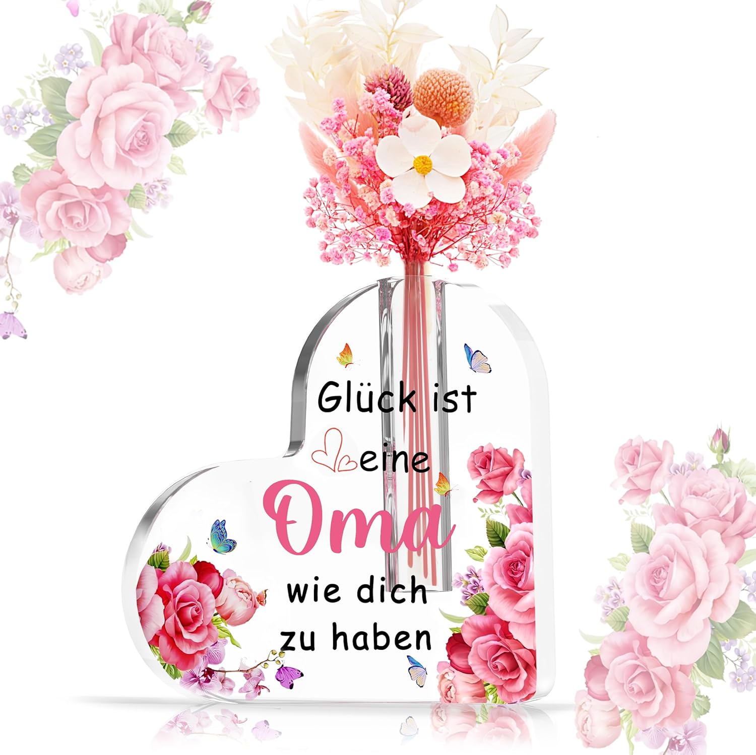 Wryzorix Acryl-Herzvase „Beste Oma der Welt“ – Muttertags-/Geburtstagsgeschenk (...