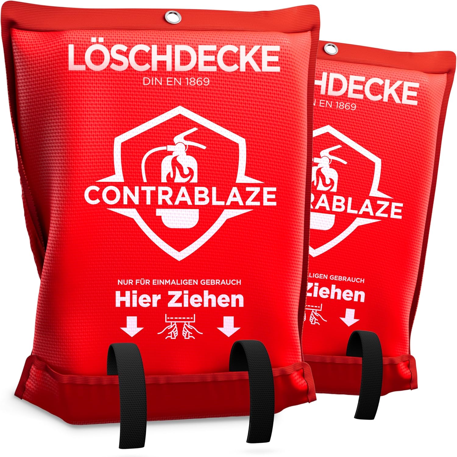 Contrablaze Feuerlöschdecke im 2er-Set (1x1 m) – Brandschutzdecke für Küche, Haushalt & Auto, EN-zertifiziert