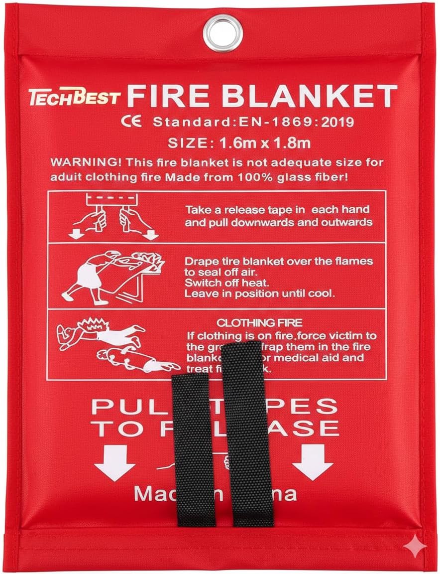 TechBest Löschdecke Küche Feuerlöschdecke (160 x 180) aus Glasfaser, DIN EN 1869:2019