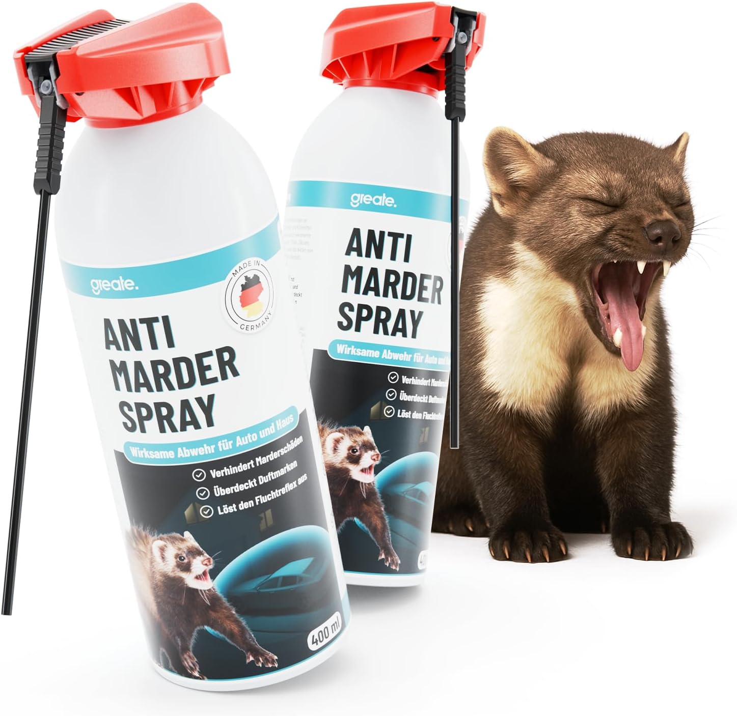 Greate 2X Anti-Marderspray mit Geraniol, 2 Dosen à 400 ml – Marderabwehr für Auto, Dachboden & Garage
