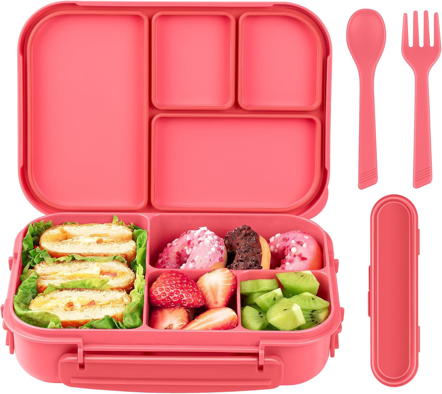 Amathley Bento Box Kinder & Erwachsene mit 4 Fächern und Besteck, 1200 ml (Rosa ...