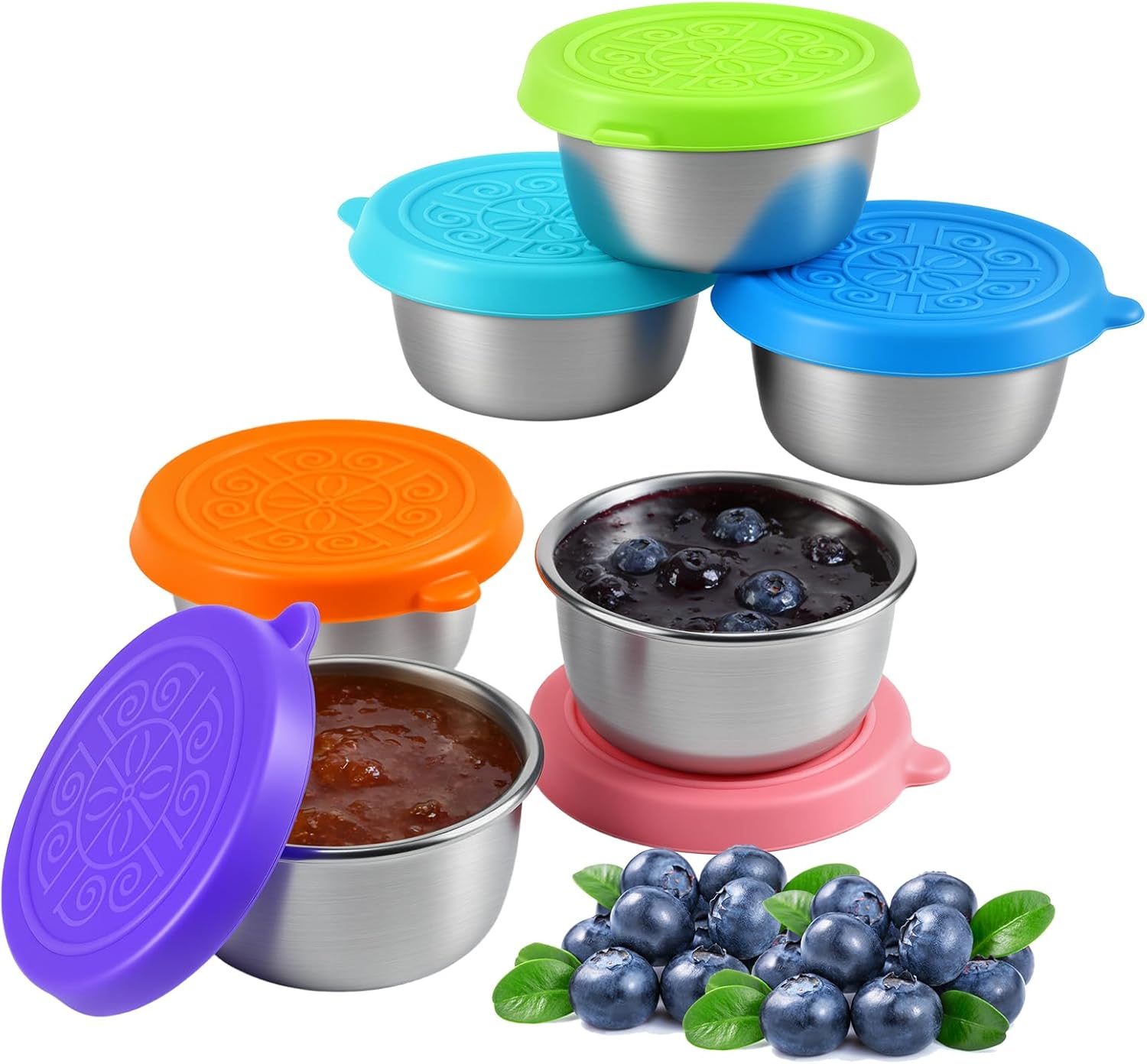 lompyeu Set mit 6 Salatdressing-Behältern (50 ml) aus Edelstahl mit Silikondeckeln