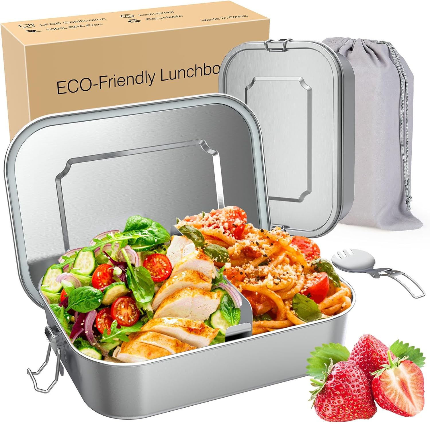 AZHE Brotdose aus Edelstahl mit Fächern – auslaufsichere Lunchbox mit Trennwand,...