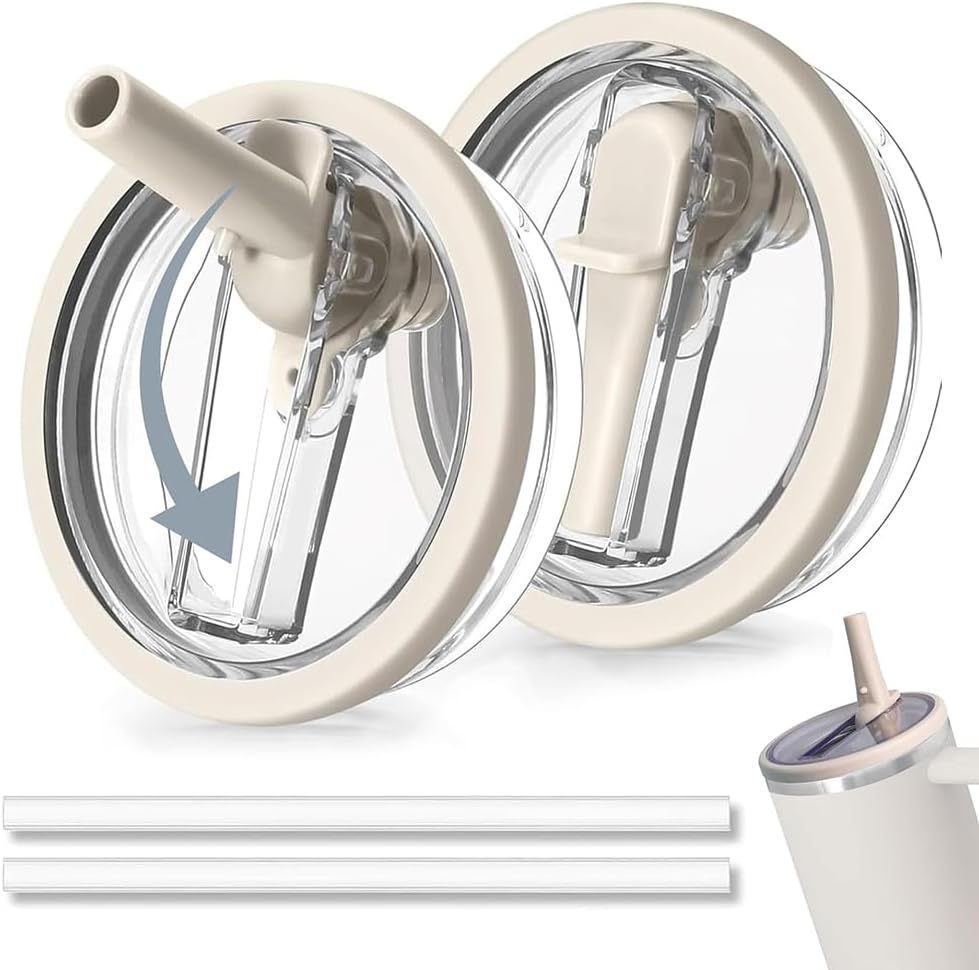2er-Set Deckel für Stanley Cup 40oz – auslaufsichere Klappdeckel mit Trinkhalmen...