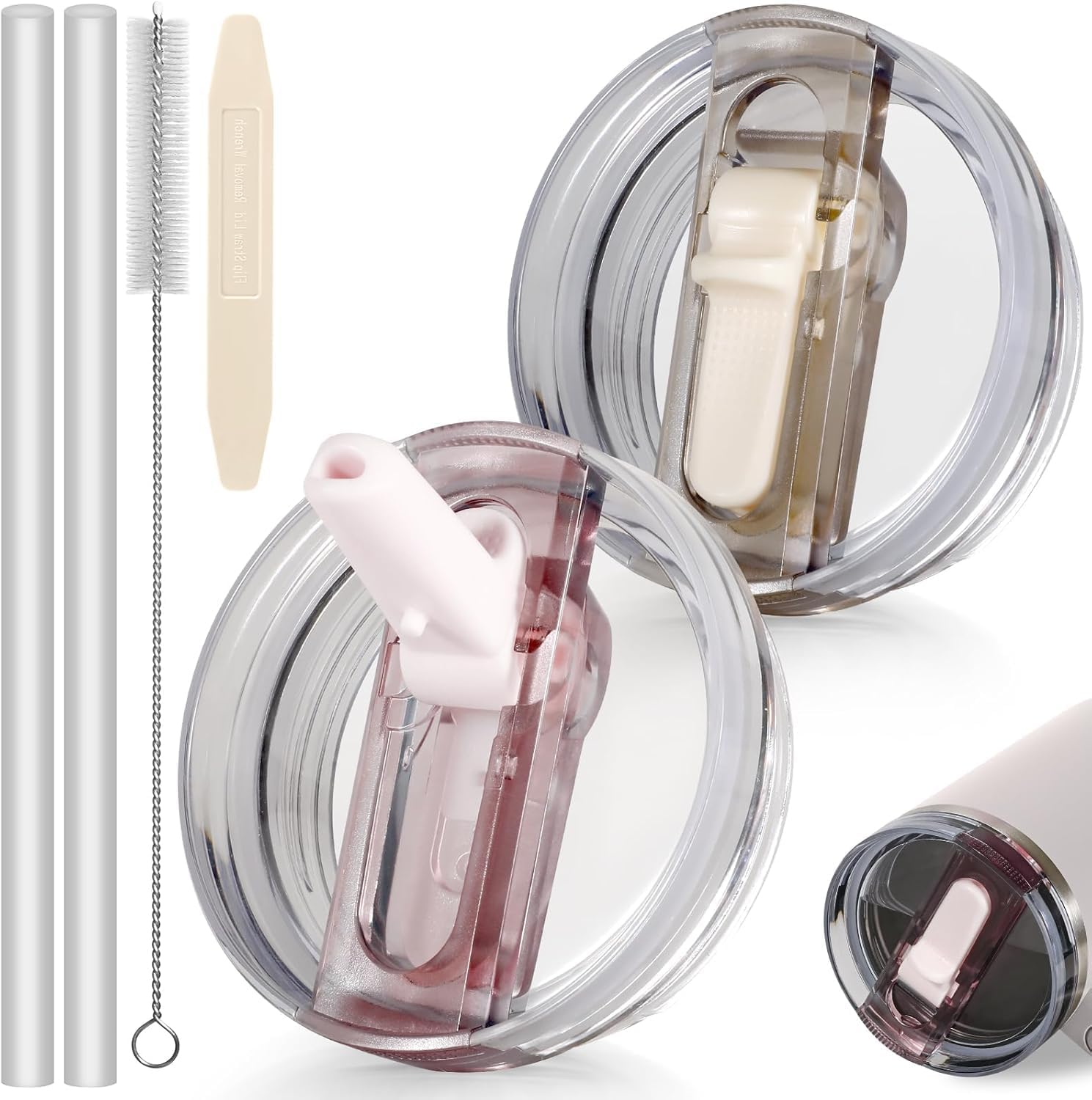 2er-Set auslaufsicherer Stanley-Cup-Deckel für 40oz Quencher (inkl. 4 Trinkhalme...