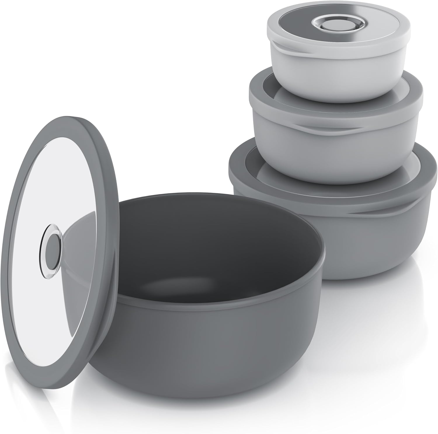 Greentainer Salatschüssel-Set mit Deckel (12-teilig) – stapelbare Rühr- und Serv...