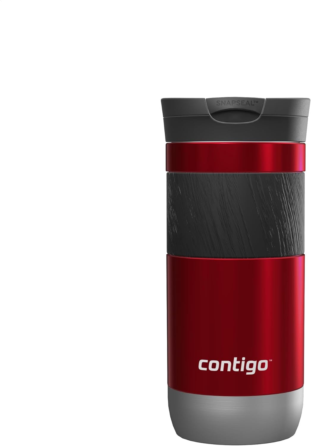 Contigo Byron Snapseal Thermobecher aus Edelstahl, auslaufsicher mit BPA-freiem Deckel (Rot) – 470 ml