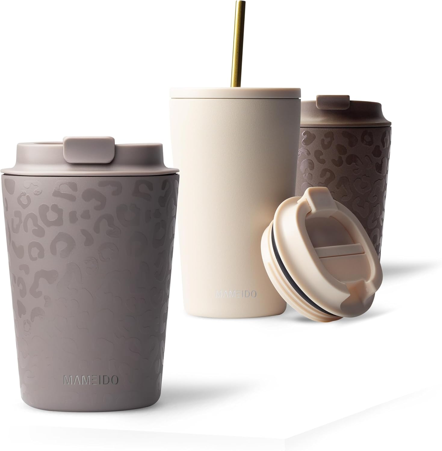 MAMEIDO Thermobecher mit Strohhalm 470 ml – auslaufsicherer Coffee-to-go Becher ...