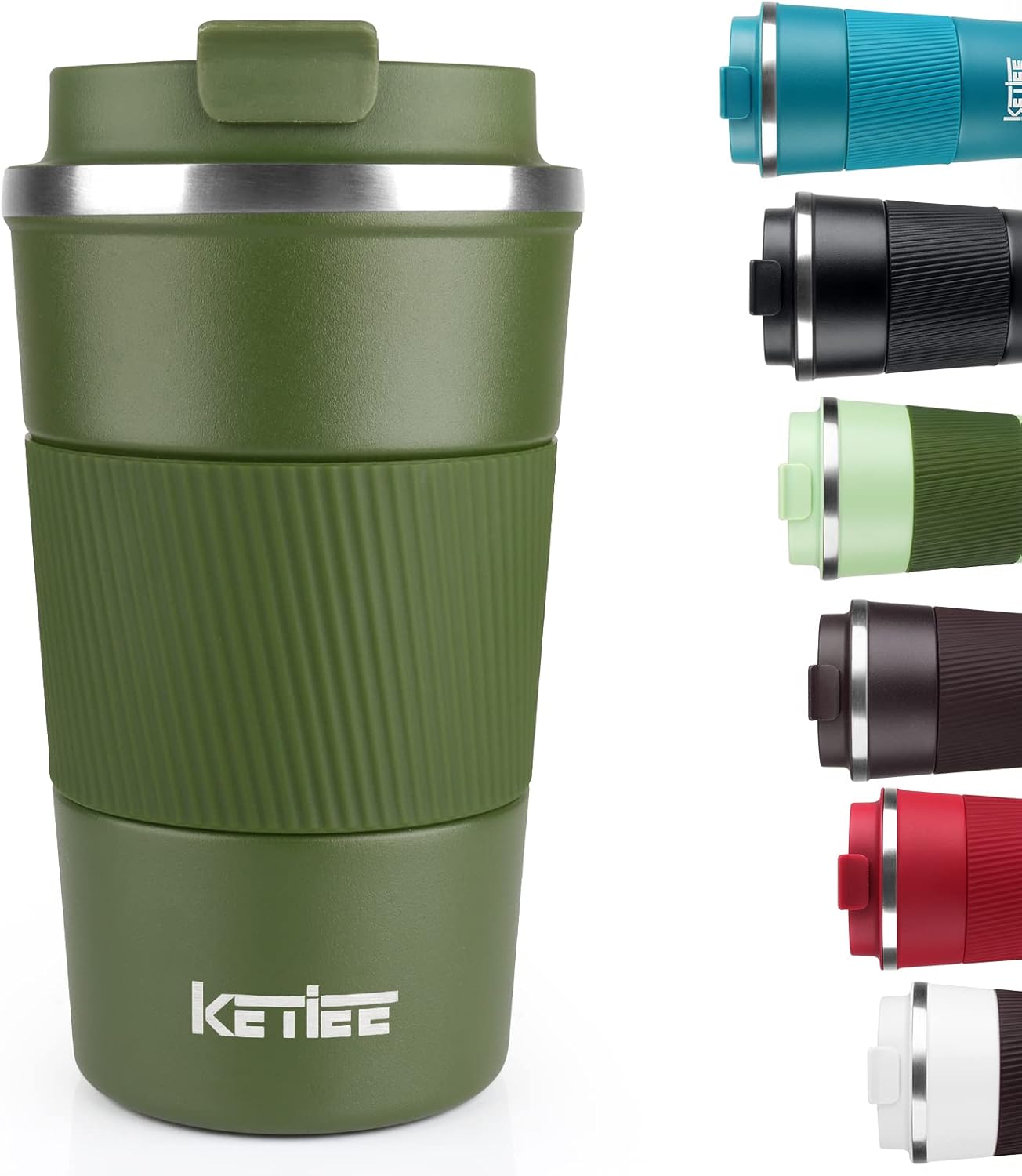 KETIEE Kaffeebecher to go (510 ml) – vakuumisolierter Thermobecher mit auslaufsicherem Deckel, olivgrün