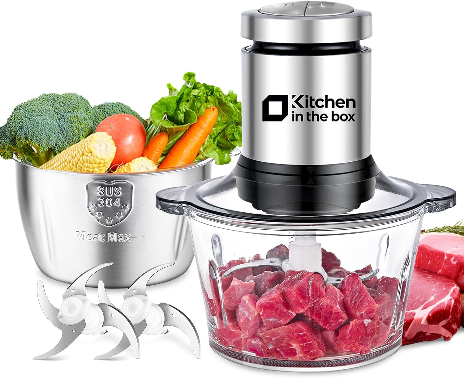 Kitchen in the Box elektrischer Zerkleinerer mit 400 W Motor, 2× 2‑L Schüsseln und Edelstahl‑Klingen