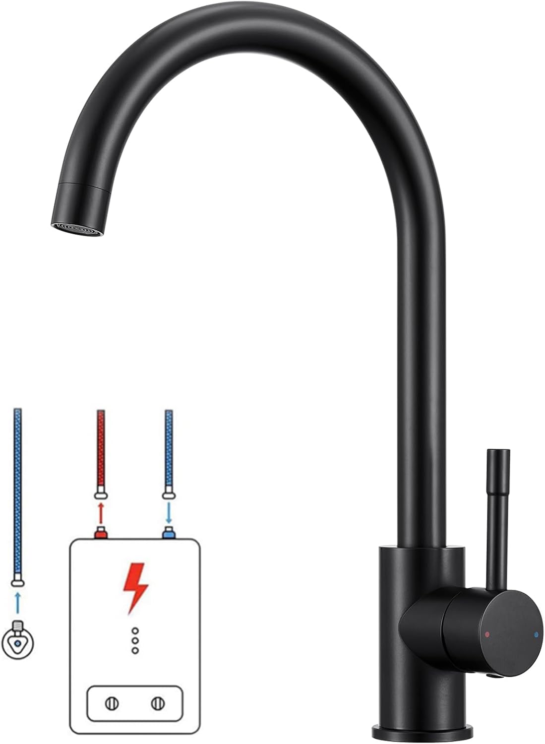 Niederdruck Armatur Küche Schwarz für Durchlauferhitzer & Untertischboiler – 360...