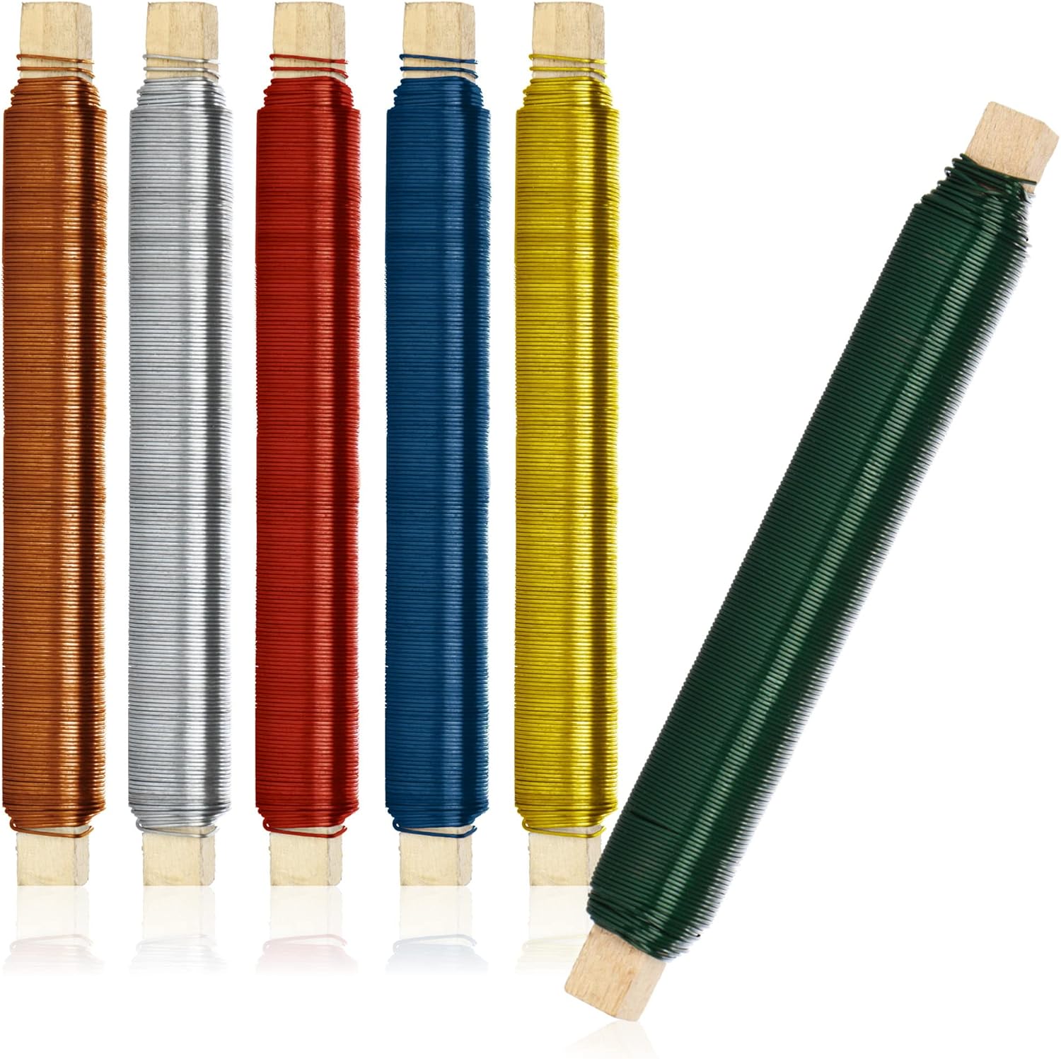com-four 10x Blumenwickeldraht-Set (geglüht), Bindedraht auf Holzstab gewickelt,...