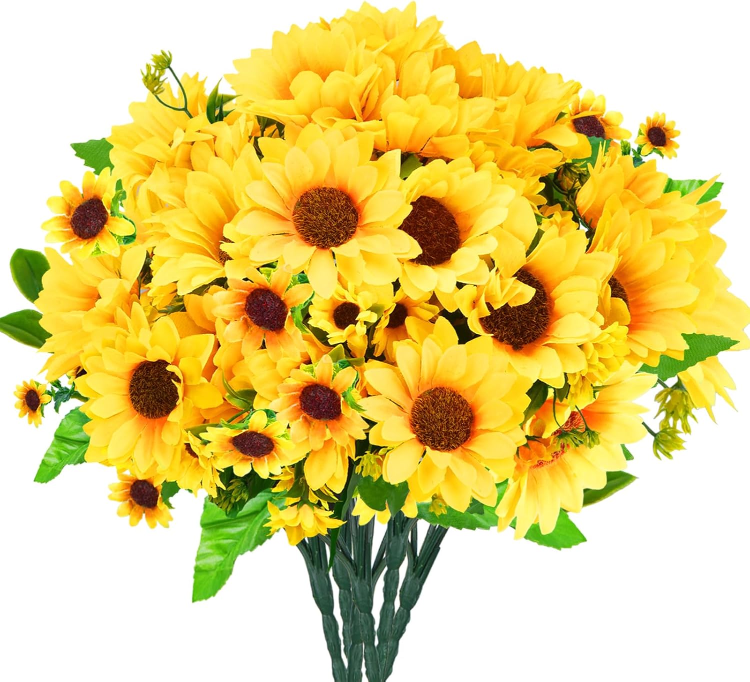 Luabue 6er Set Kunstblumen Sonnenblumen (32 cm) für Vase & Tischdeko