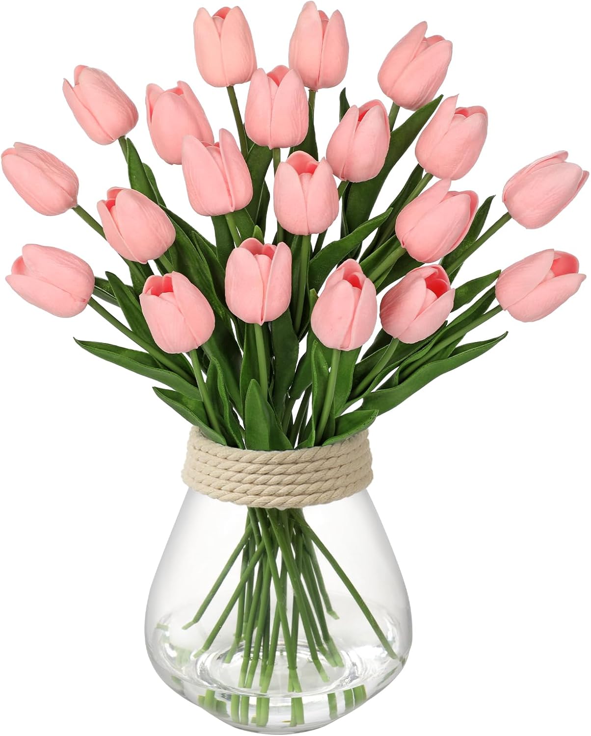 Briful 10er Set künstliche Tulpen Hellrosa (Real-Touch) – biegsame Deko-Blumen, ...