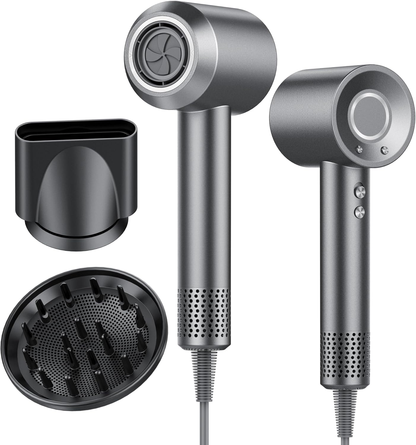 Gibt es Aufsätze für Locken und Glätten? Ja, laut Beschreibung sind ein magnetischer Diffusor und Konzentratordüsen vorgesehen.