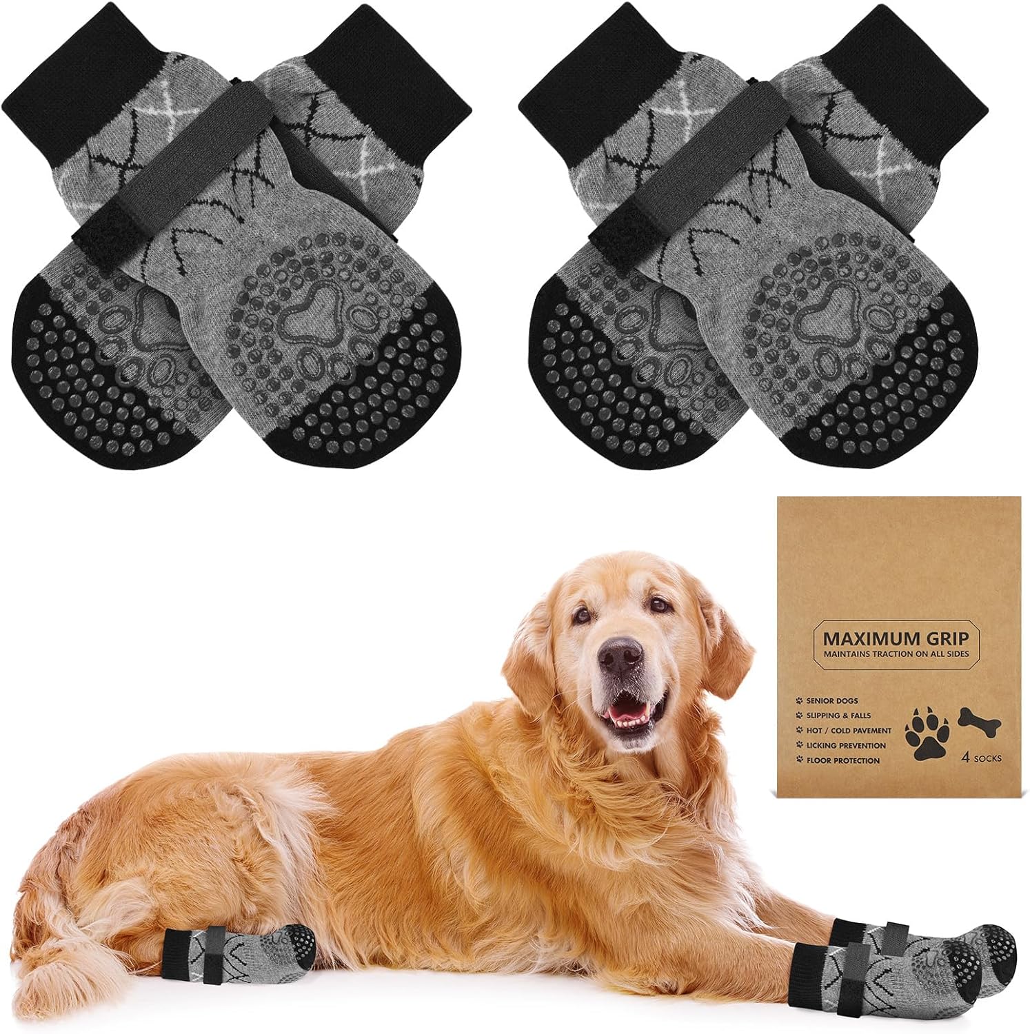 - PICK FOR LIFE Hundesocken Anti-Rutsch (2 Paar) doppelseitig mit verstellbaren Riemen – Grau, S