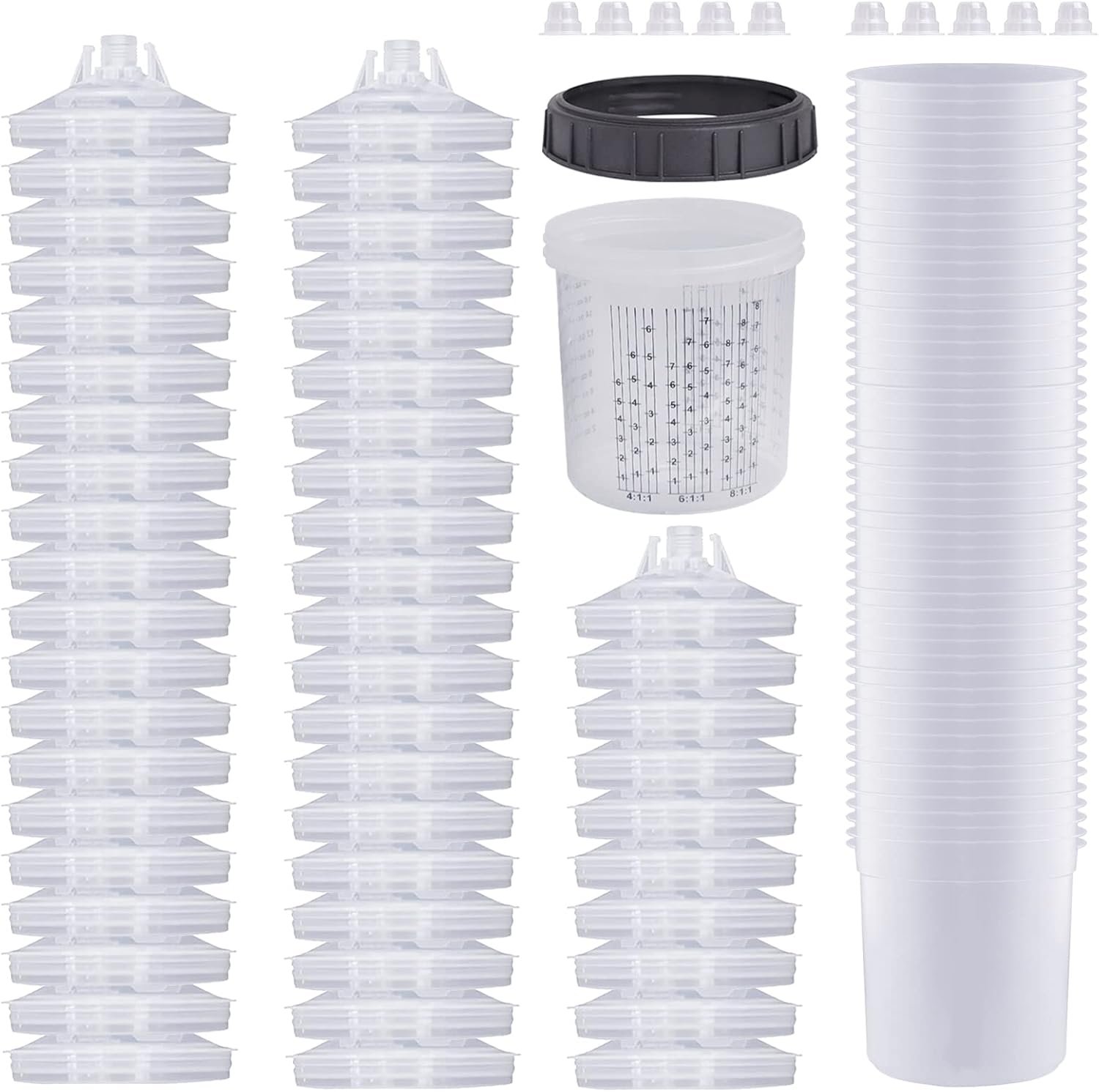 Aflybltol Lackierpistole: Becher-Set für HVLP-Farbsprühsystem (600 ml) mit Deckel & Liner, 50 Einwegdeckel, 10 Verschlussstopfen