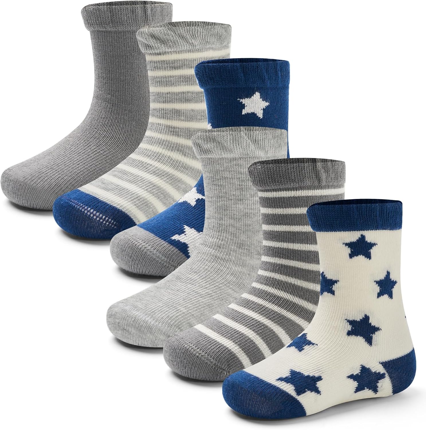 Aisyee 6 Paar Stoppersocken für Baby Jungen aus Baumwolle – rutschfest für die ersten Schritte