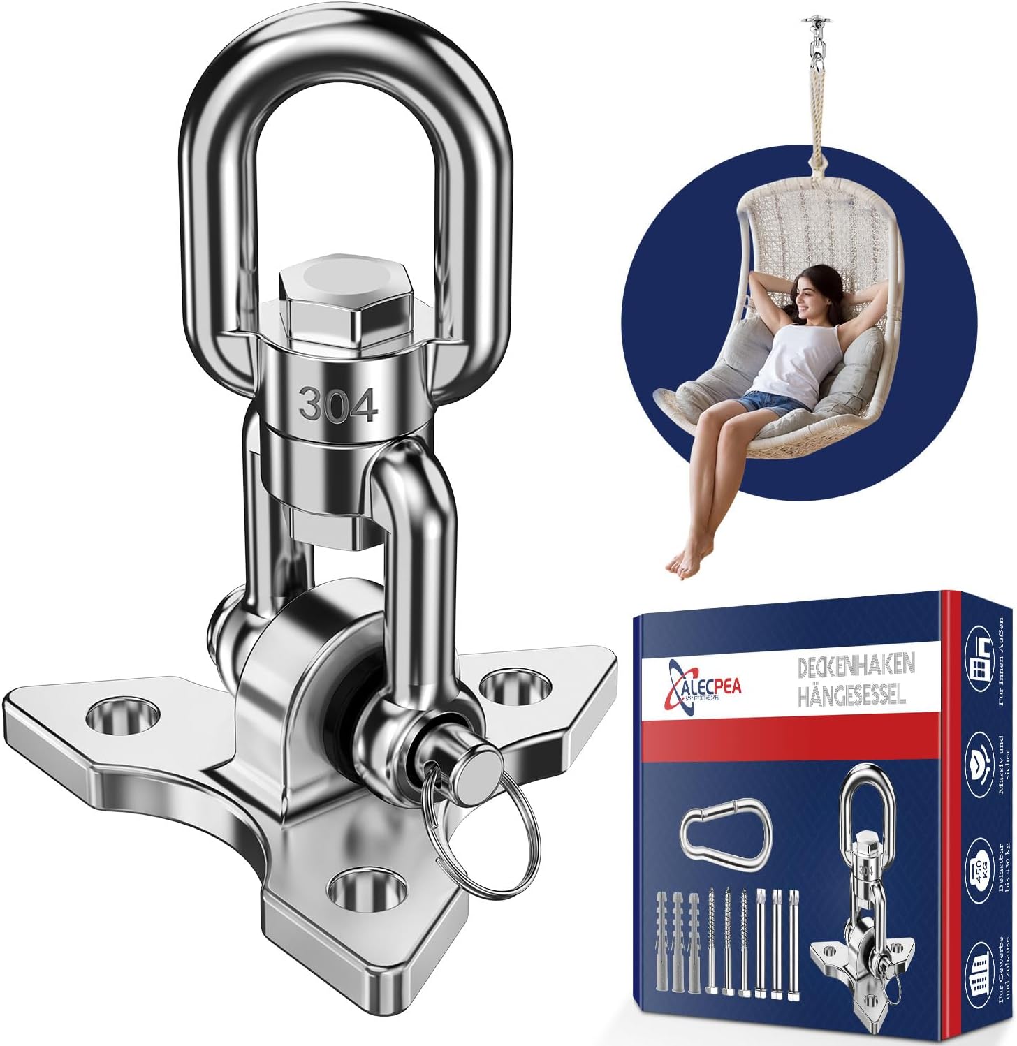 ALECPEA 360° Dreh-Deckenhaken für Schaukeln & Hängesessel – Tragfähigkeit 450 kg, Edelstahl