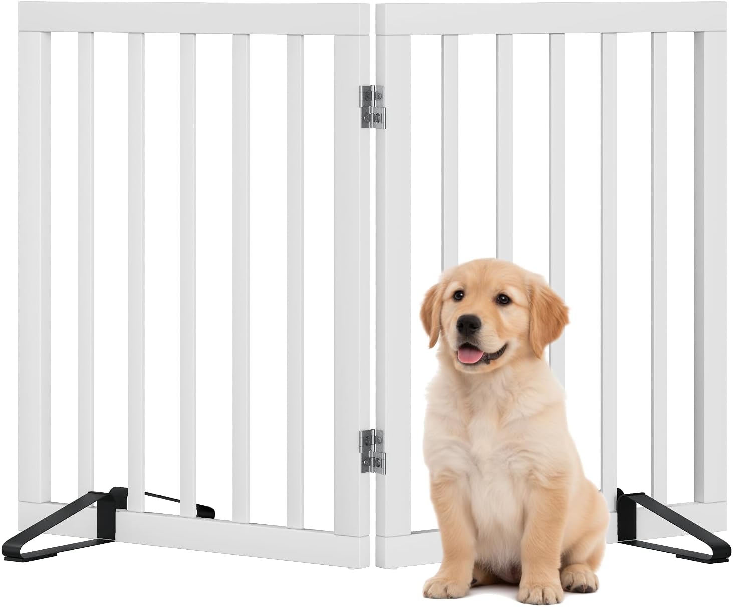 Algherohein freistehendes Hundegitter für Türen, faltbar (2 Paneele, weiß) – Welpen- & Haustiergitter für den Innenbereich
