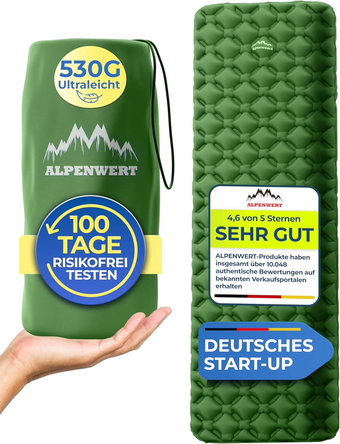 Alpenwert Isomatte Outdoor: ultraleichte Luftmatratze fürs Camping & Wandern (531 g)