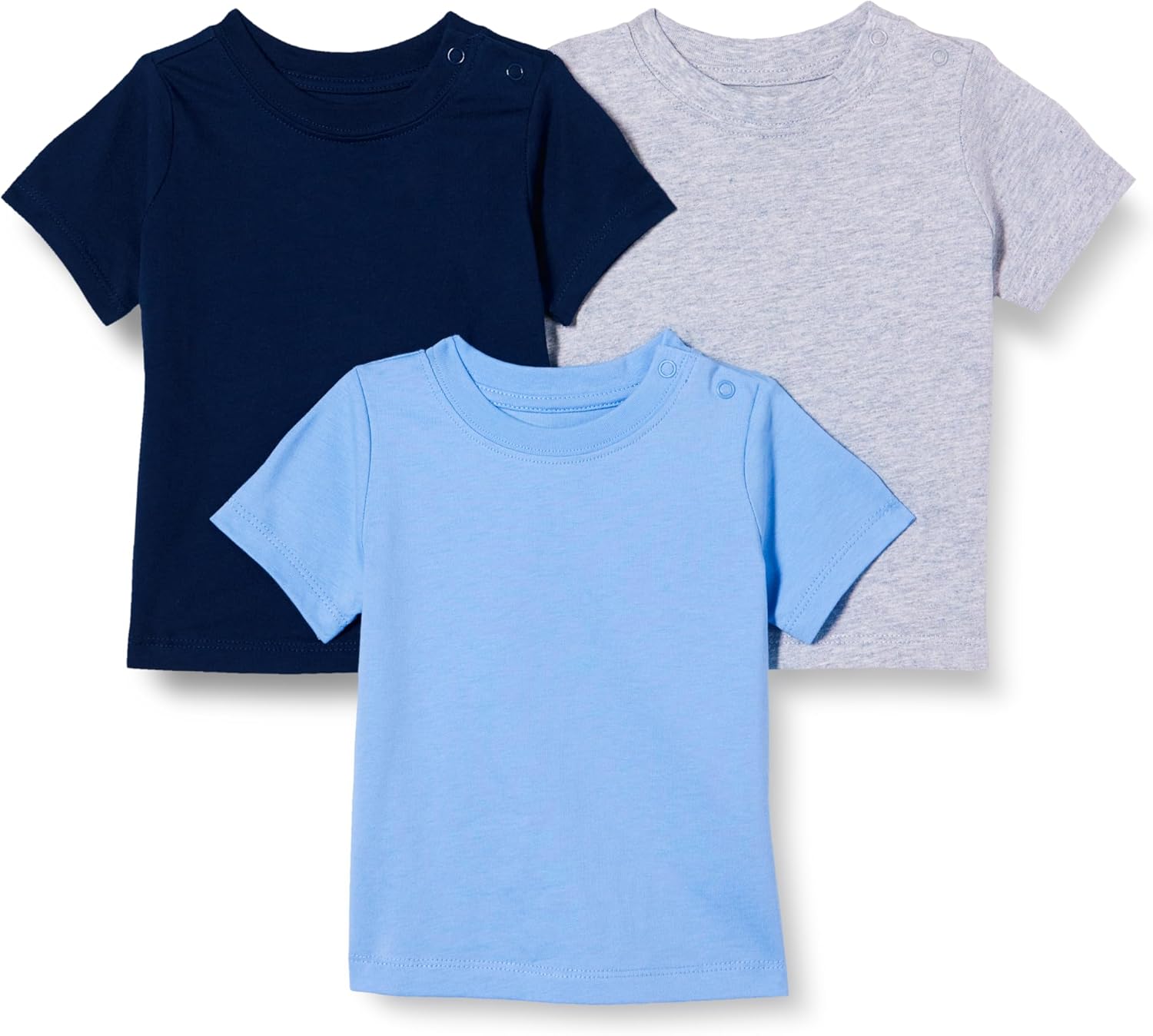 Bei diesen Baby-T-Shirts setzt Amazon Essentials auf ein klassisches Design mit Rundhalsausschnitt und geripptem (eingefasstem) Halsausschnitt. Das ist nicht nur optisch typisch, sondern auch funktional, weil der Ausschnitt stabiler wirkt als ein ganz einfacher Stoffrand.