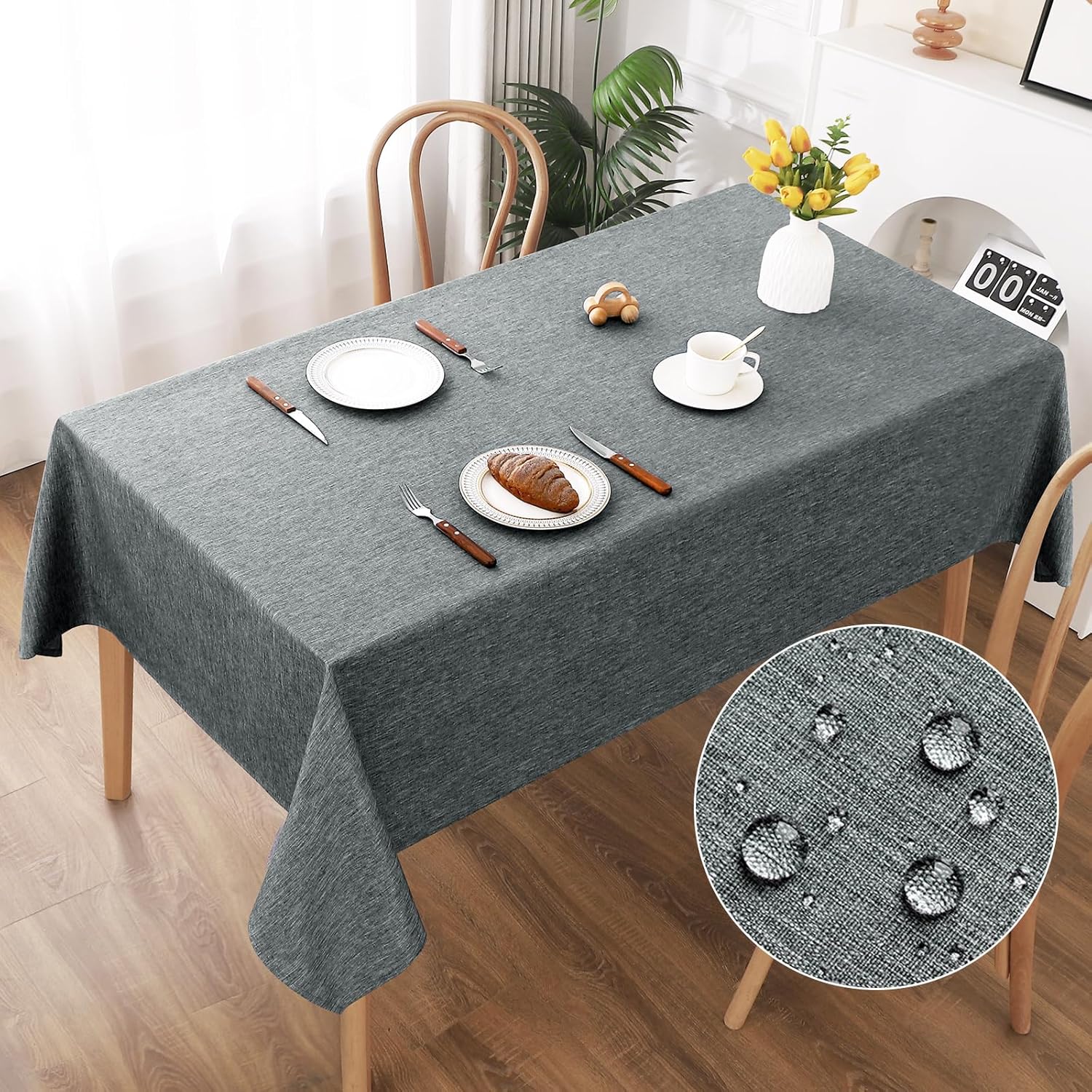 AooHome Tischdecke 140x220 cm Grau (Leinen-Optik) – wasserabweisend & abwischbar