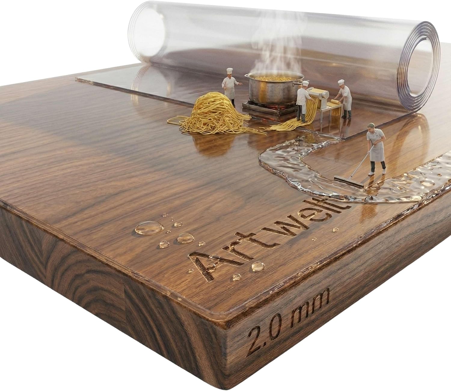 Artwelt Tischdecke Transparent Tischfolie 2.0 mm (glasklar, weich-PVC) – waschbarer Tischschutz im Wunschmaß