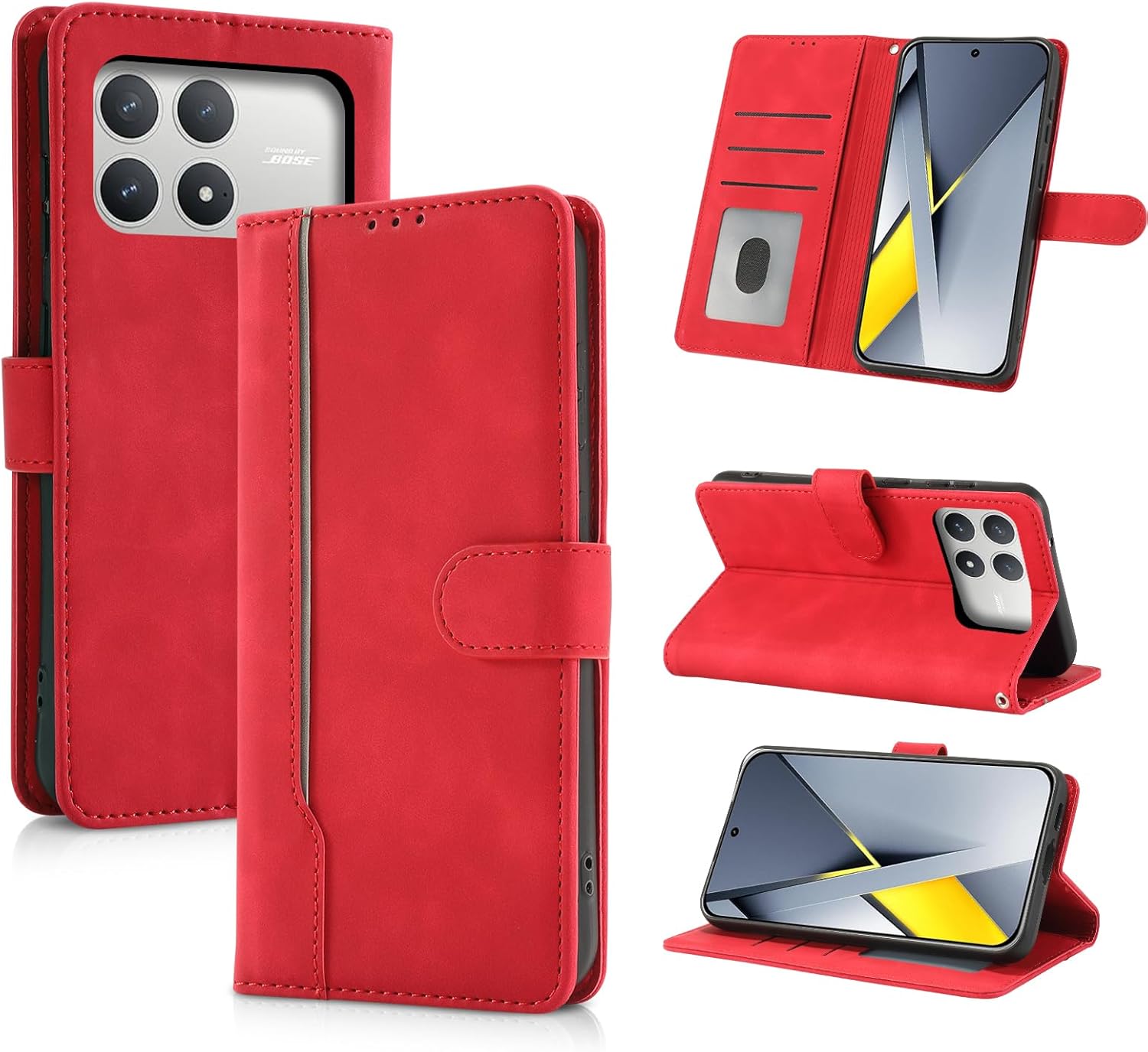 AsWant Handyhülle für Xiaomi Poco F8 Pro – klappbares Leder-Flipcase mit Kartenfächern, Magnet und Standfunktion (rot)