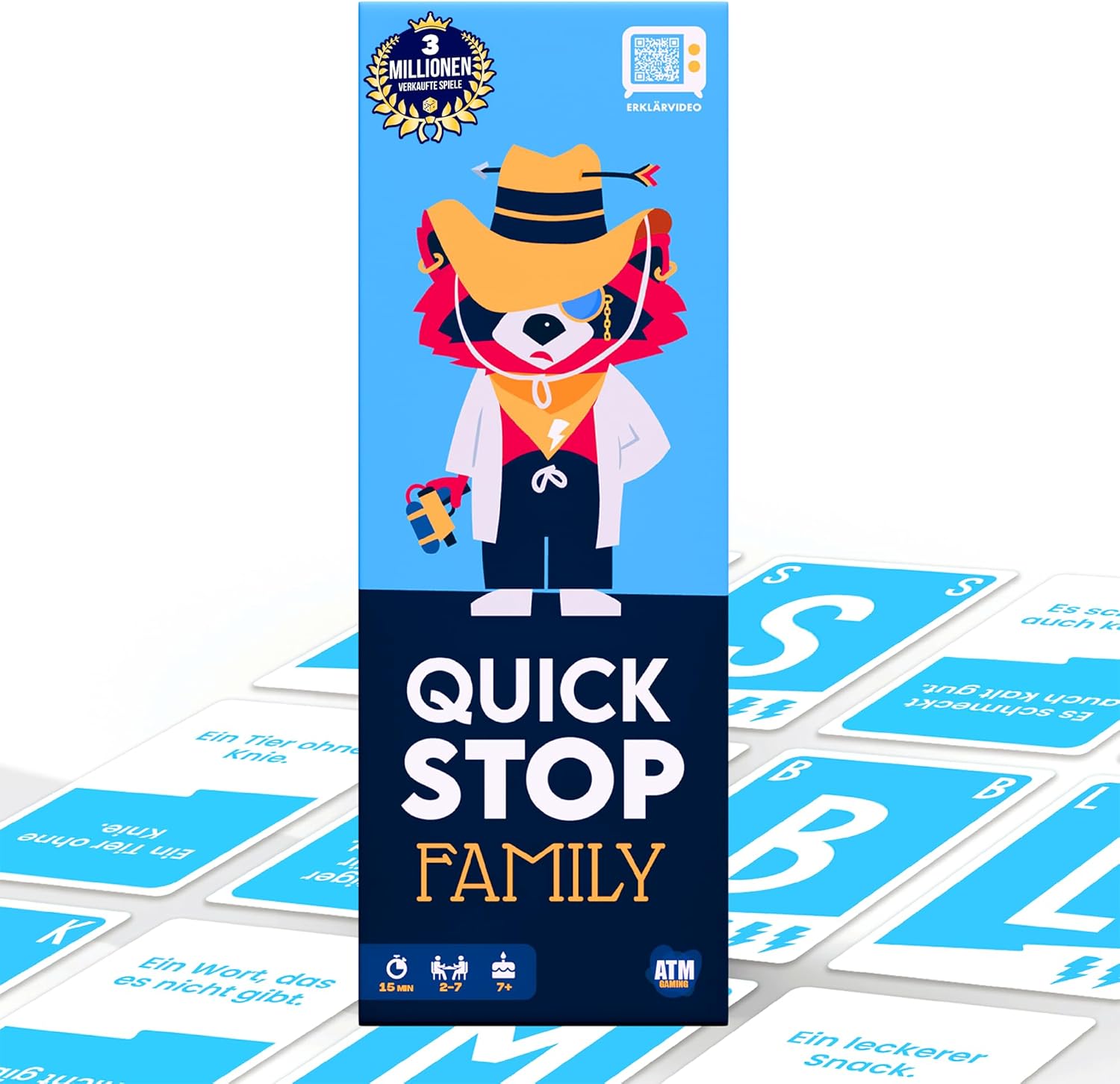 „QuickStop – Das Buchstaben-Duell“ ist ein Familienspiel, das auf Tempo und Wortschatz setzt. Laut Beschreibung geht eine Spielrunde in etwa 15 bis 30 Minuten, und die Regeln sollen sich in rund einer Minute erklären lassen. Genau das macht es für viele Familienabende interessant: Man muss nicht erst lange erklären, sondern kann relativ schnell in den Spielmodus kommen.