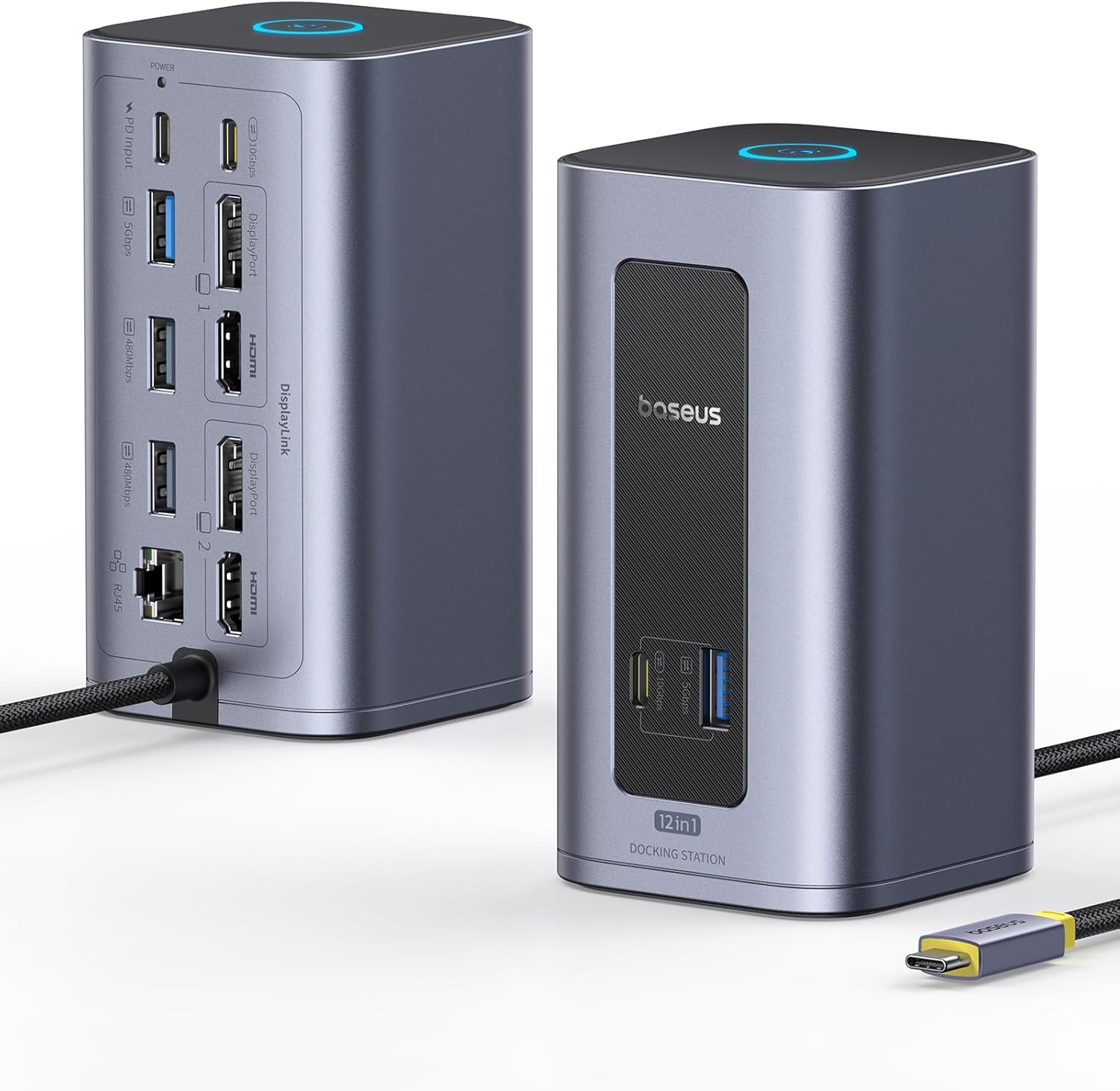 Baseus Nomos Air Mac 12-in-1 DisplayLink Dockingstation für macOS – Dual-Display mit 2K (HDMI/DP), 10Gbps USB-C/A und 100W PD