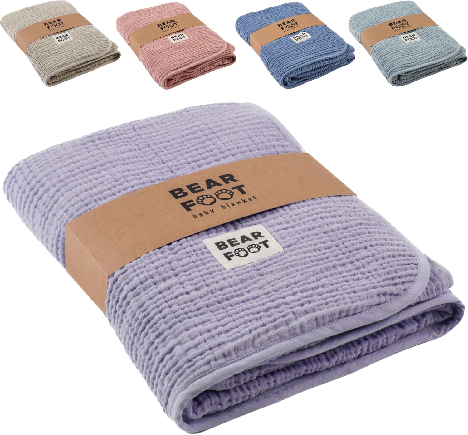 BEARFOOT Babydecke Musselin-Fleecedecke (Baumwolle & Fleece) in Lavendel – 2-seitig für Baby, Neugeborene und Kinder