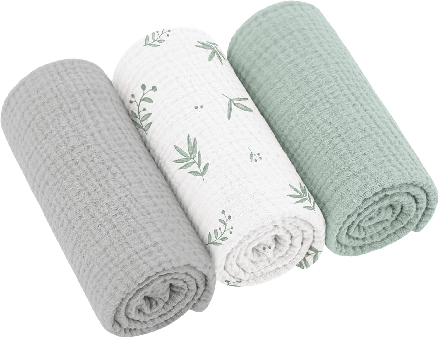 Bearmoss Moltontücher Baby – 100% Baumwolle Musselin Spucktücher, 3er Set, 60×60 cm