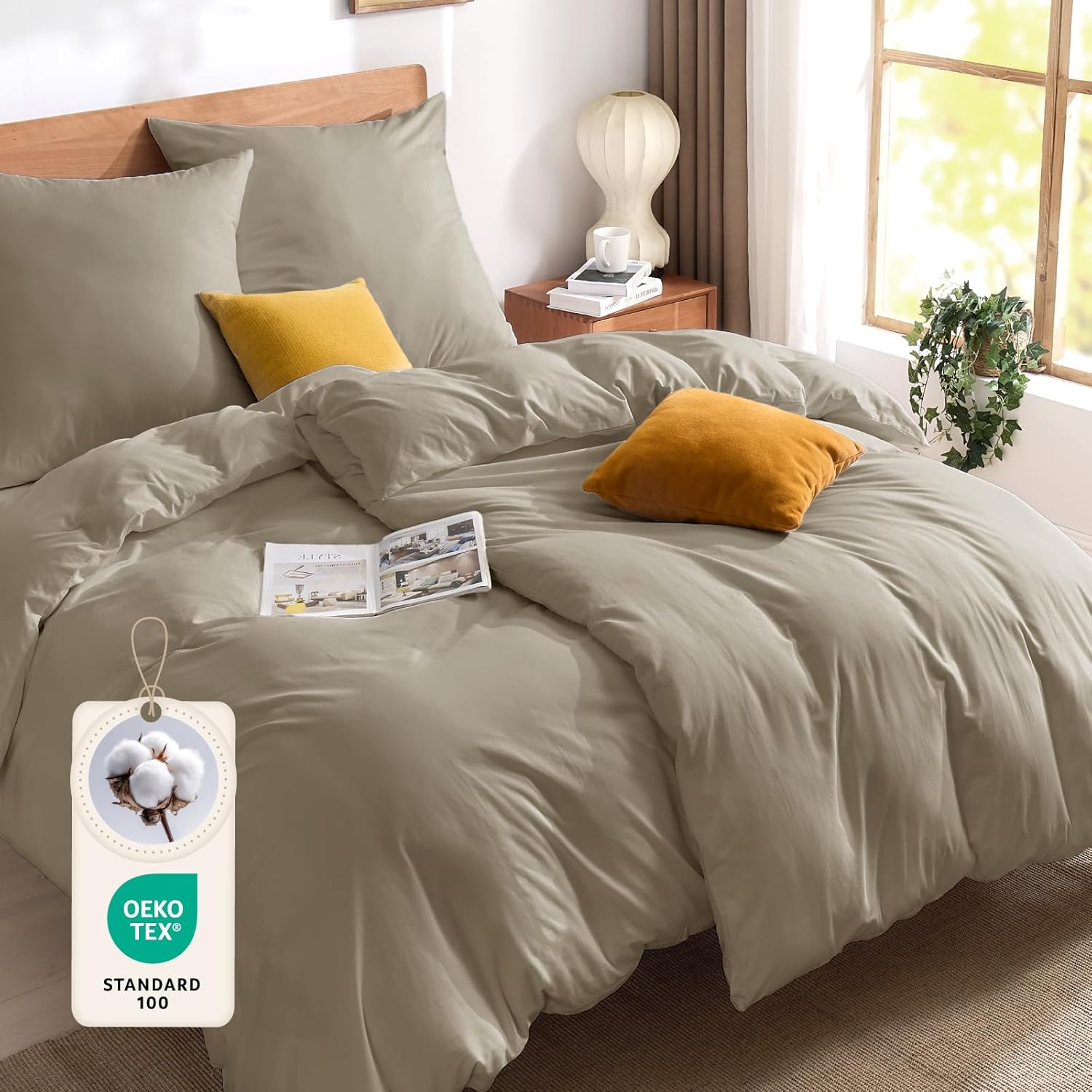 - Nesture Bettwäsche 155x220 cm aus gewaschener Baumwolle (beige), 2-teilig mit Reißverschluss