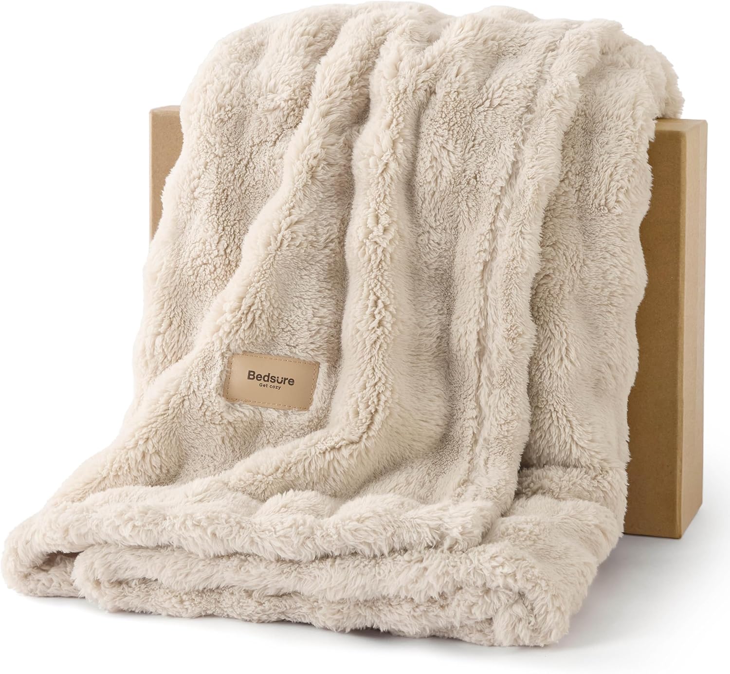 BEDSURE Kuscheldecke „Bubble“ CloudBurbuja 150x200 cm in Beige – Sofadecke & Wolldecke-Feeling