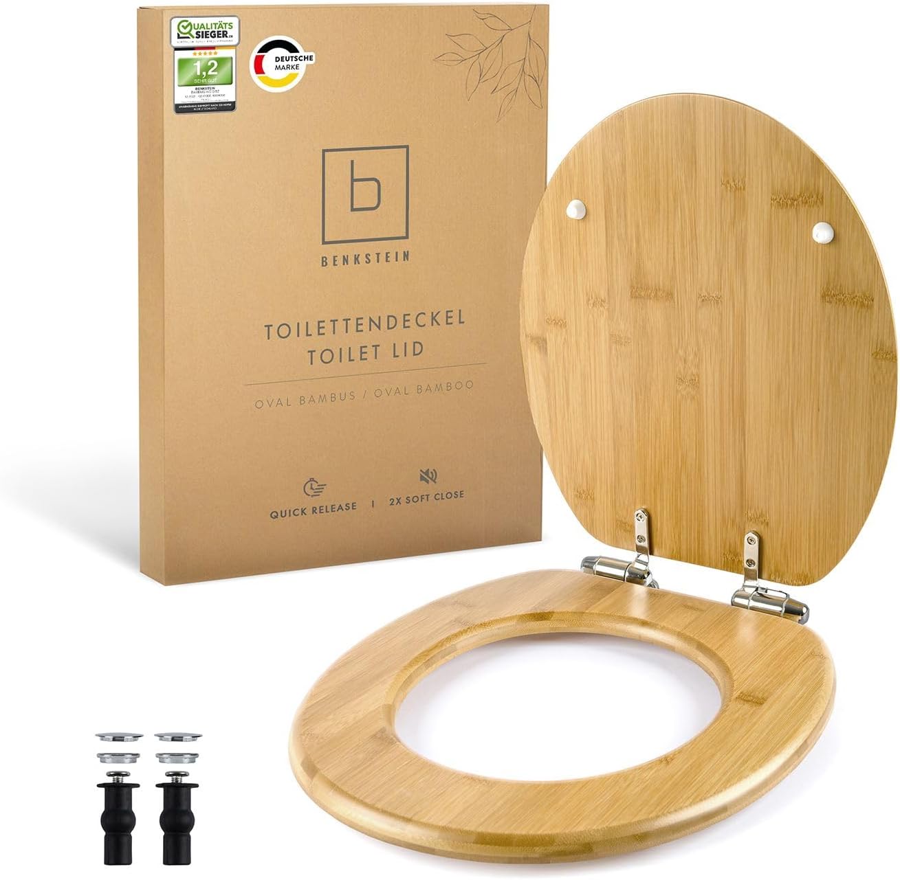 Der ovale Benkstein Toilettendeckel aus Bambus vereint ästhetische Holzoptik mit robuster Bauweise und sorgt durch den doppelten Softclose Mechanismus für ein sanftes, geräuscharmes Schließen. Mit Maßen von 43,5 x 37,5 cm passt er auf Standardtoiletten und bietet eine stilvolle Ergänzung für jedes Badezimmer. Die Quick Release Funktion ermöglicht eine schnelle Abnahme des Deckels zur gründlichen Reinigung, ohne dass Werkzeug benötigt wird. Dank der glatten Oberfläche ist die Reinigung kinderleicht und antibakterielle Eigenschaften werden durch das Material unterstützt. Die langlebige Bauweise aus Bambus steht zudem für Umweltbewusstsein und eine nachhaltige Wahl.