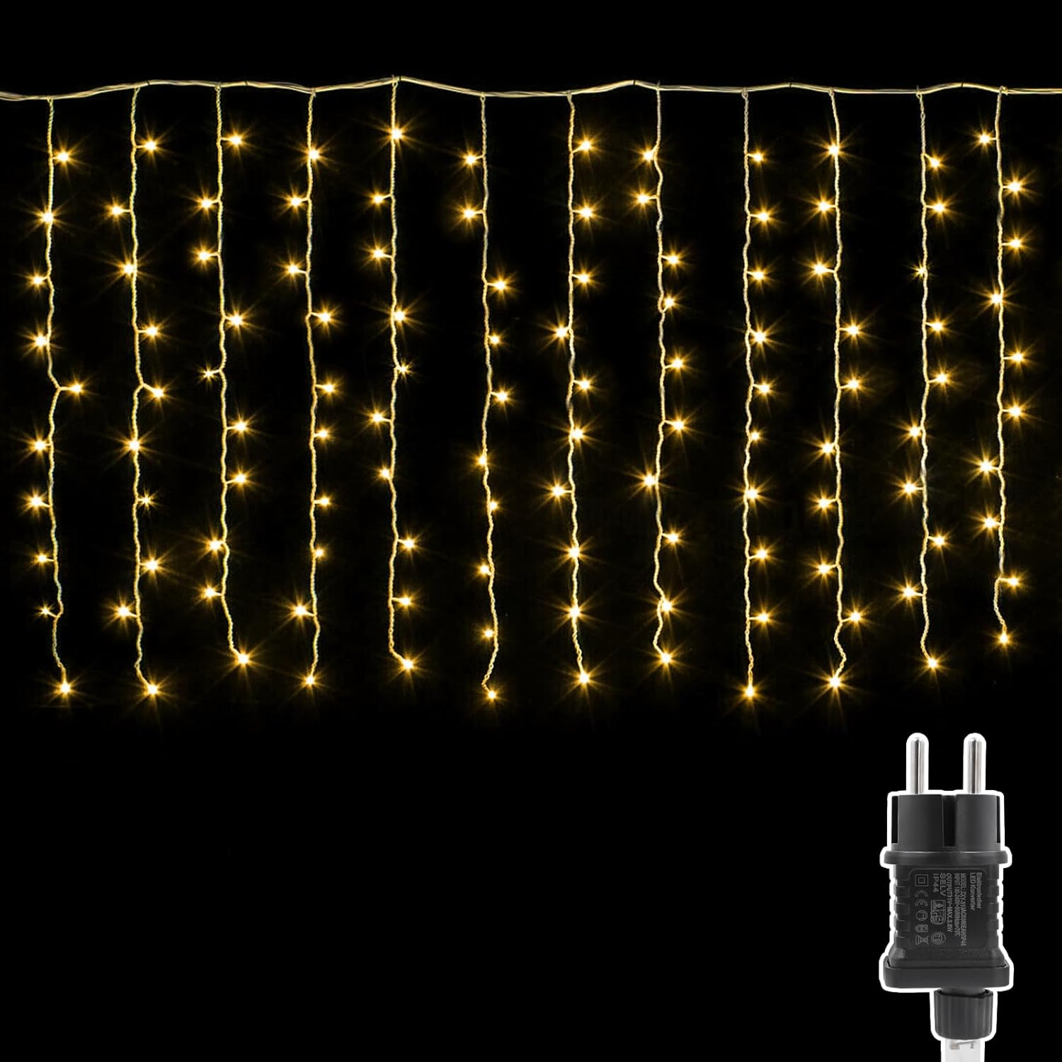 A.bigwhale Lichtervorhang Außen 4x1 m mit Eisregen-Effekt, 200 warmweiße LED, Timer & Memory