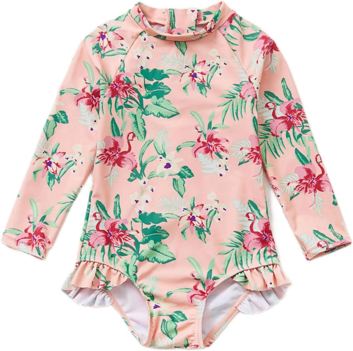 BONVERANO kleiner Mädchen Schwimmanzug mit UV-Schutz, Blumenmuster & Sonnenhut