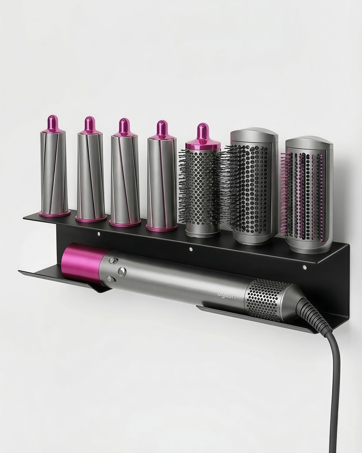 Bowyune Dyson Airwrap Halterung (Aluminium) – Wandhalter ohne Bohren, 7 Steckplätze für Airwrap-Zubehör, Schwarz