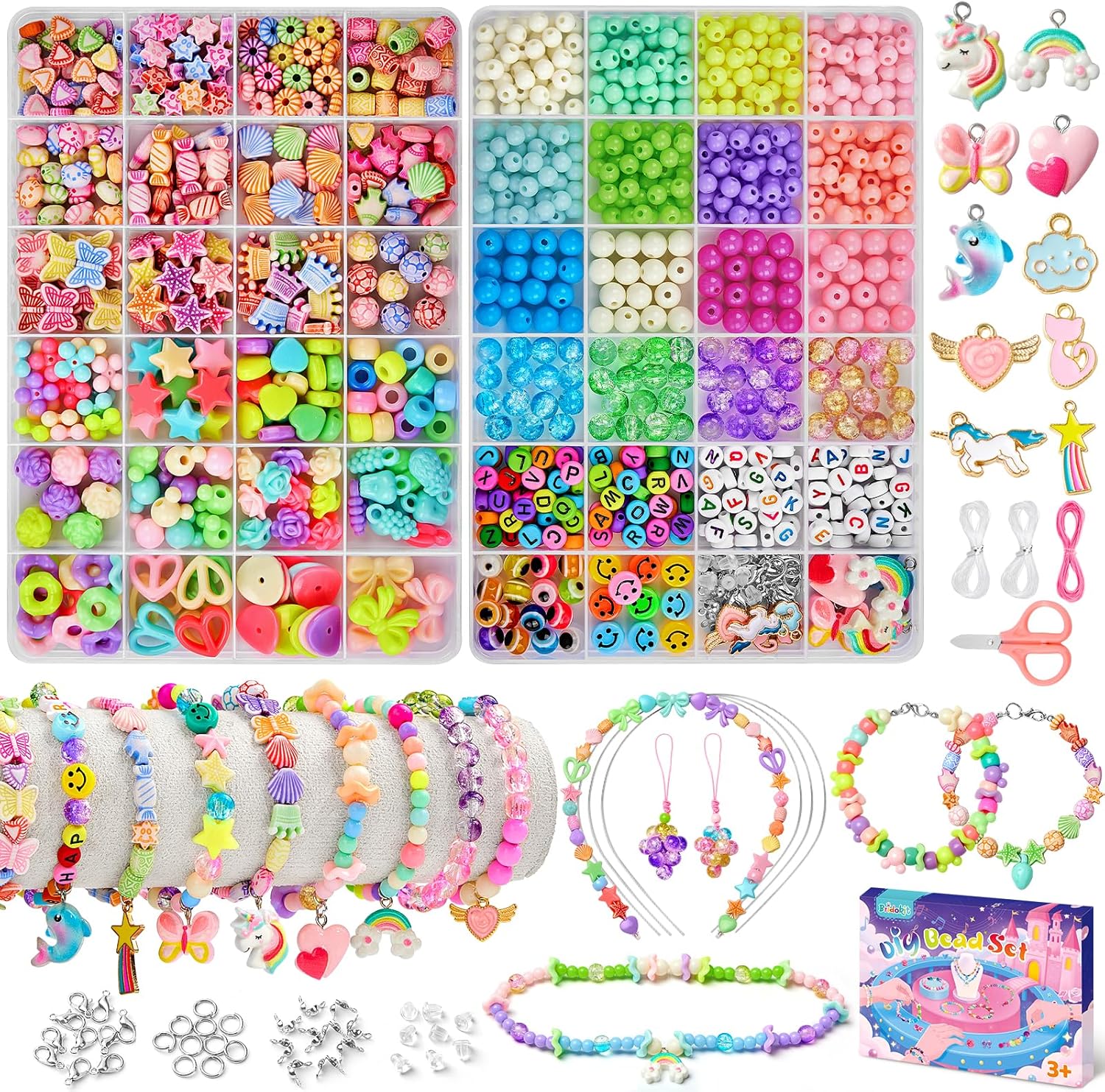 Bridokit Perlen-Set für Kinderarmbänder – 2 Boxen mit 46 Arten zum Auffädeln, Kreativ-Bastelset ab 4/5/6/7/8/9 Jahren